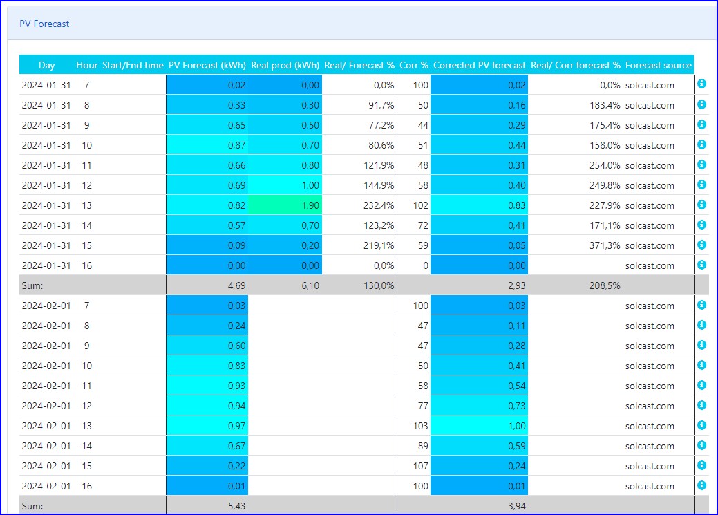 | PV Forecast sources | forecast.solar, solcast.com | solcast.com | ? |