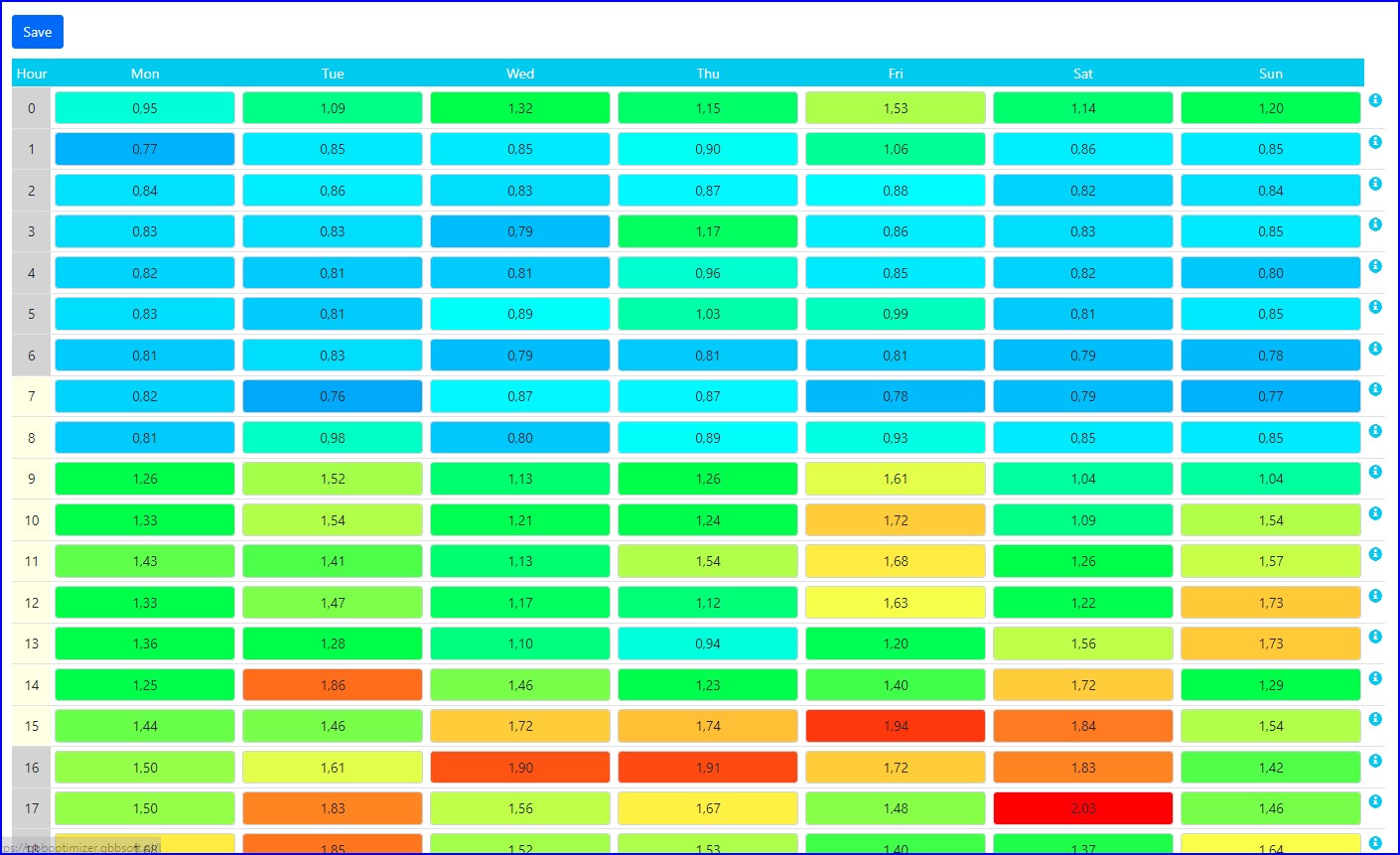- Dynamically changes hours with the lowest price depending on the SOC level of the cars