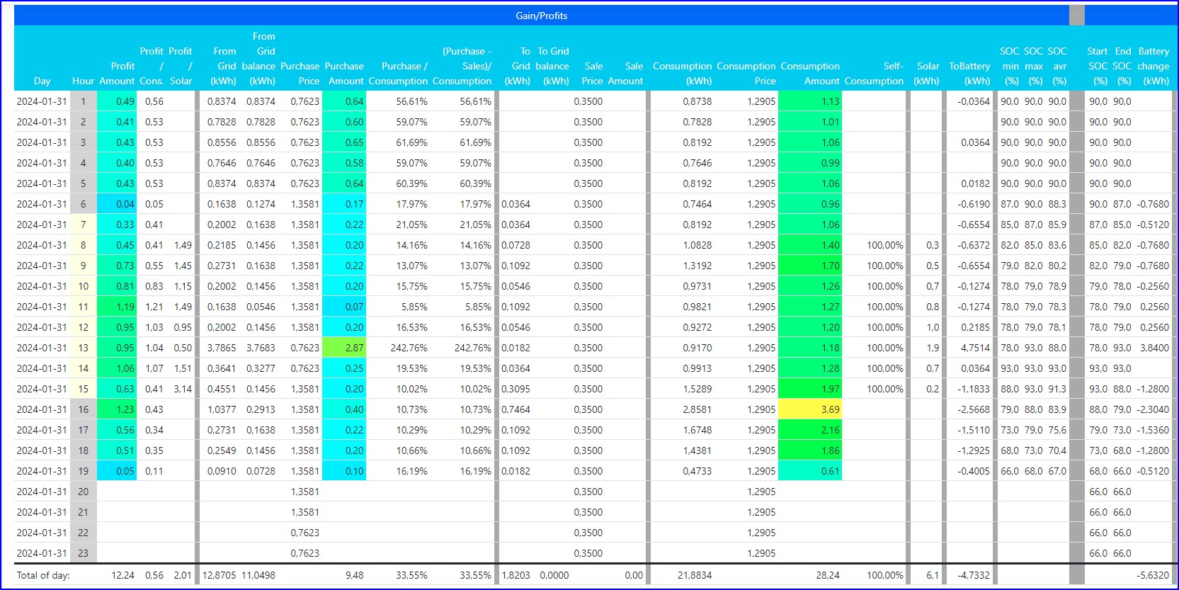 - calculate profits (in money) from Victron and PV systems